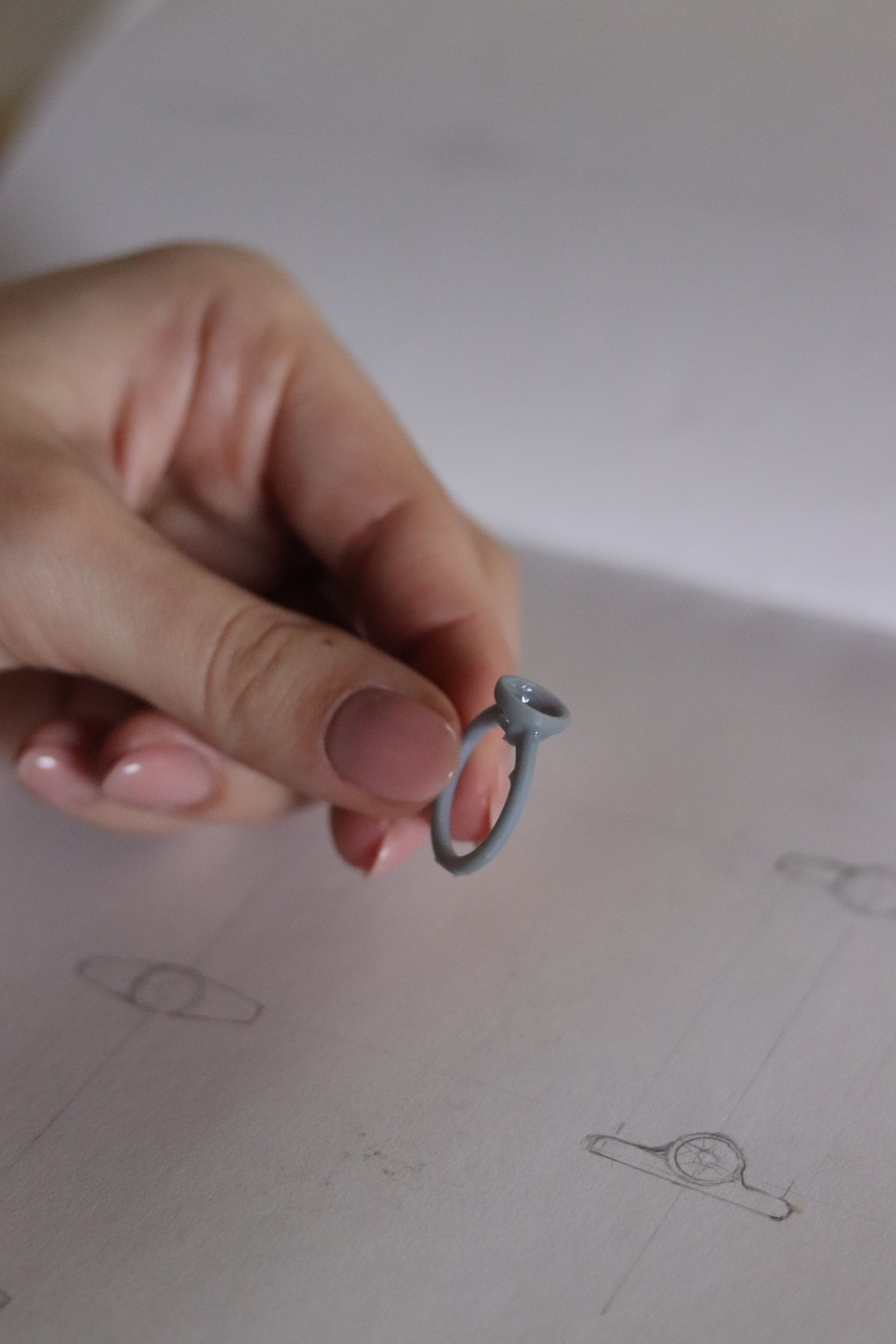 Step Four - Using the final selected gemstone’s proportions and dimensions, Kiersten will bring the design details to life through a series of sketch options, refining elements of the setting, balance, and overall aesthetic. Once a final design is approved, it will be translated into a detailed computer-aided design (CAD) model to prepare the piece for production.